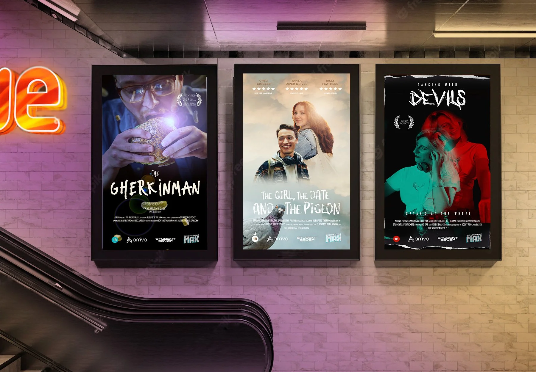 The pick of the campaign was this set of posters in cinemas. Disguised as movie posters, they encouraged students to bus life to the max and carry on their night after the movie.